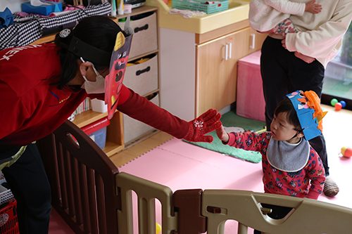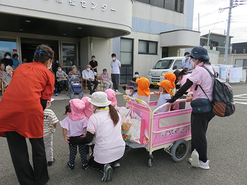 くまのこ保育園では、上富田町の町長さんとお話したり、デイサービスのおじいちゃんおばあちゃんに会いに行ったりと、地域の交流を大切にしています。