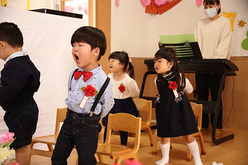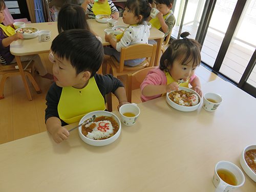 また、お給食の先生が「今日のお給食どうかな??」と毎日お部屋に顔を覗かせてくれるので、作ってくれた人に喜んでもらえるように、少し苦手なおやさいも大きなお口で食べるところを見せてくれます